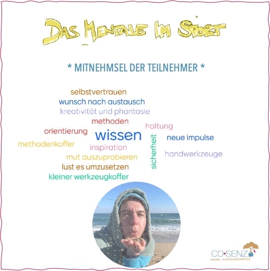 Das Seminar lebt außerdem vom Input und der Vielfalt der Teilnehmer. Je mehr du aus deinem Traineralltag einbringst, desto individueller und bunter wird das Seminar. Und desto spezifischer dein Mitnehmsel in der Trainerkladde. Ich bin ein Fan vom Integrieren der Gegebenheiten.